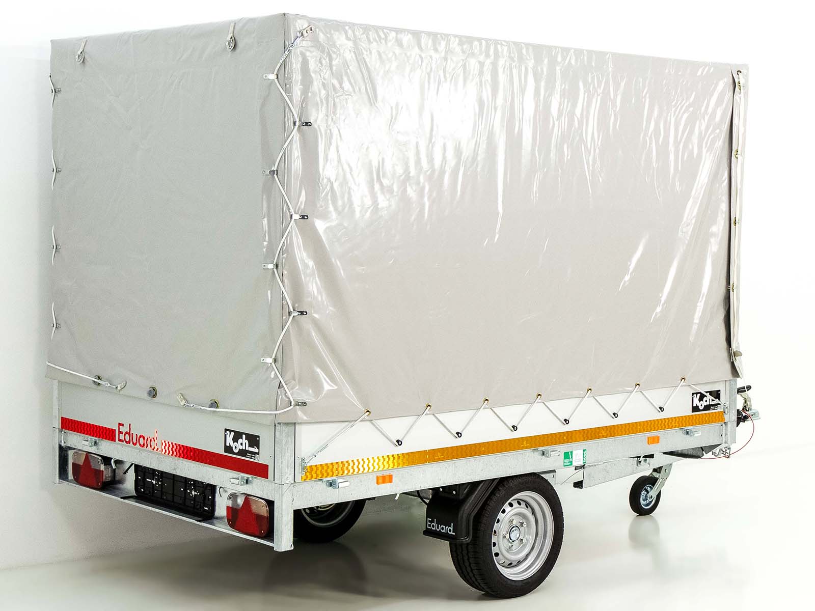 Der Eduard Hochlader Anhänger 2618 GE bietet eine großzügige Ladefläche von 180×256 cm und ein zulässiges Gesamtgewicht von 1,8 Tonnen. Mit einem Leergewicht von nur 365 kg und einer Nutzlast von bis zu 1435 kg ist dieser Anhänger eine robuste Lösung für leichte bis mittelschwere Transportaufgaben. Der Anhänger ist mit feuerverzinktem Stahlrahmen und abnehmbaren Aluminium-Bordwänden (300 mm hoch) ausgestattet. Die 10 Verzurrösen (800 daN) im Bodenrahmen gewährleisten eine sichere Ladungssicherung. Optional kann eine 100 km/h Zulassung hinzugefügt werden, was ihn für den schnellen Transport auf der Straße prädestiniert.