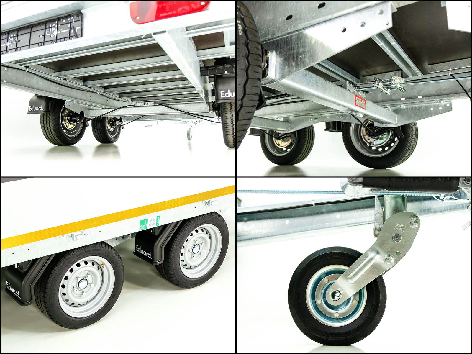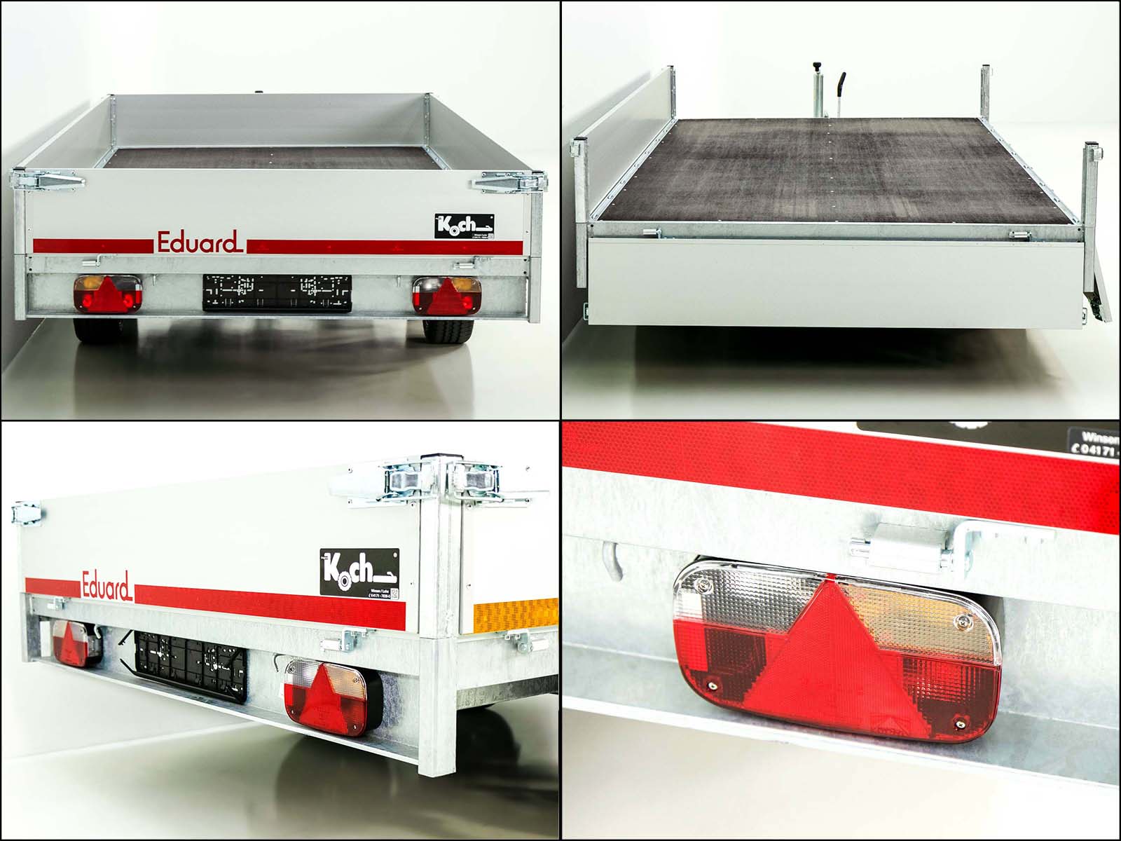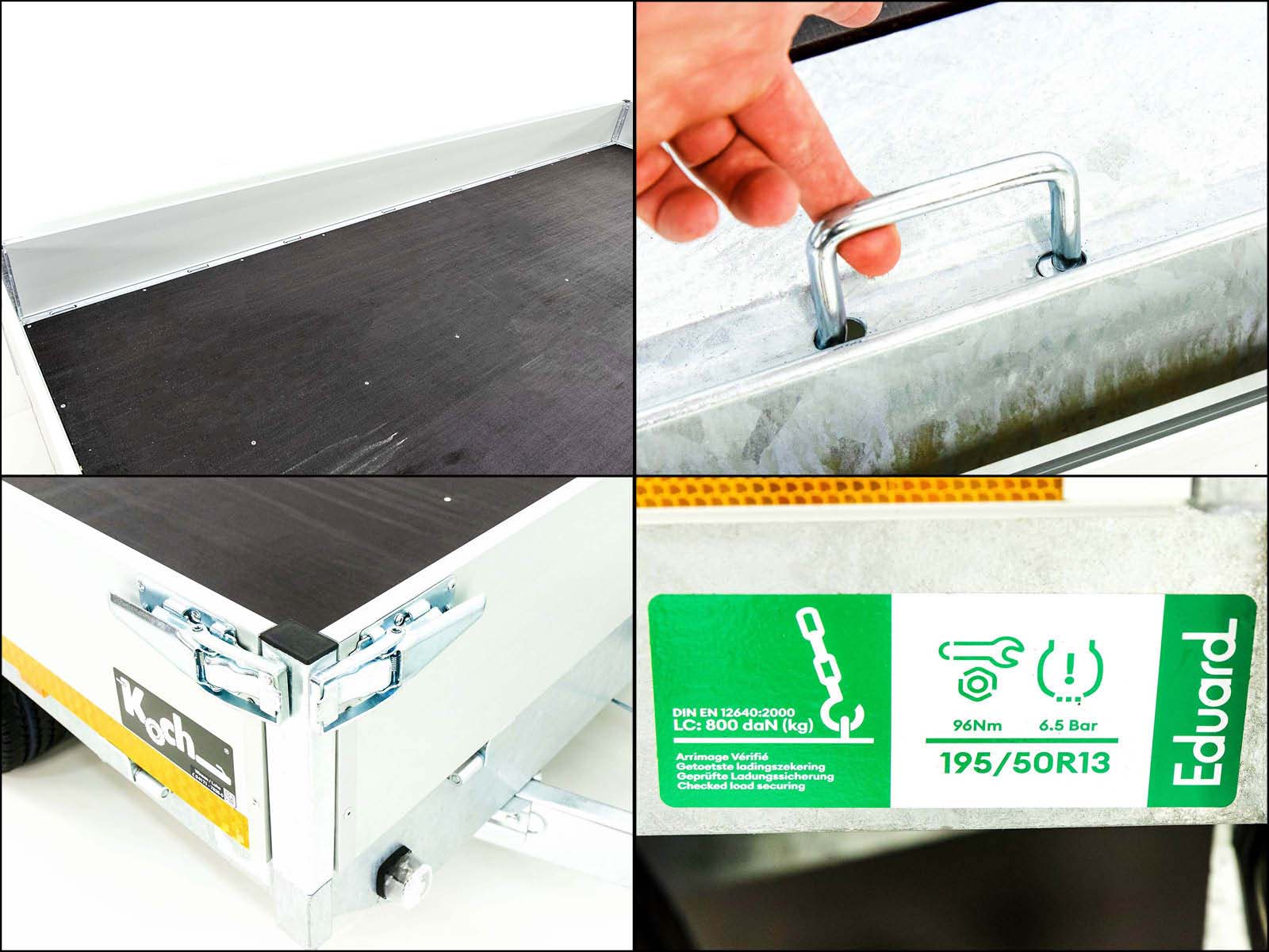 Der Eduard Hochlader Anhänger 4018 GD bietet eine großzügige Ladefläche von 180×406 cm und ein zulässiges Gesamtgewicht von 2,7 Tonnen. Mit einem Leergewicht von ca. 543 kg und einer Nutzlast von bis zu 2157 kg ist er ideal für mittlere bis schwere Transportaufgaben. Ausgestattet mit einem feuerverzinkten Stahlrahmen, abnehmbaren Aluminium-Bordwänden (300 mm hoch) und 16 Verzurrösen (800 daN) im Bodenrahmen sorgt dieser Anhänger für eine hohe Stabilität und eine sichere Ladungssicherung. Die Gummifederachse und das Automatik-Stützrad bieten hohe Fahrkomfort und einfache Handhabung. Der Anhänger ist mit einer Rückfahrautomatik ausgestattet und kann auf Wunsch mit einer 100 km/h Zulassung versehen werden.