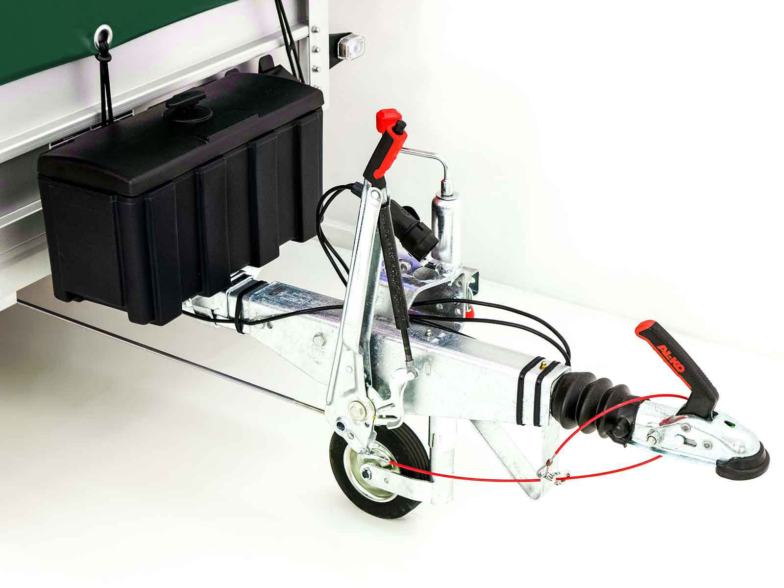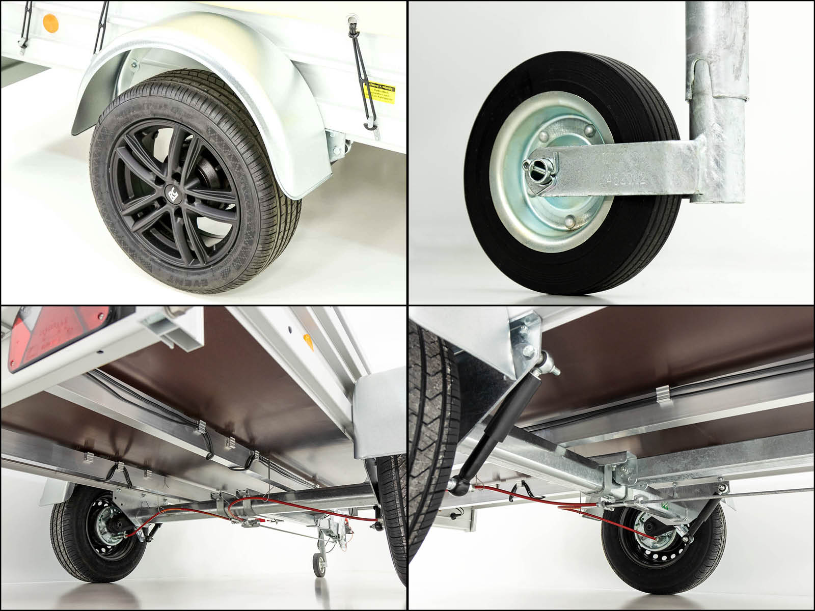 Durch die feuerverzinkte Achse und das gummigefederte Achsensystem bietet der Anhänger hohe Zuverlässigkeit bei einer maximalen Geschwindigkeit von 100 km/h.