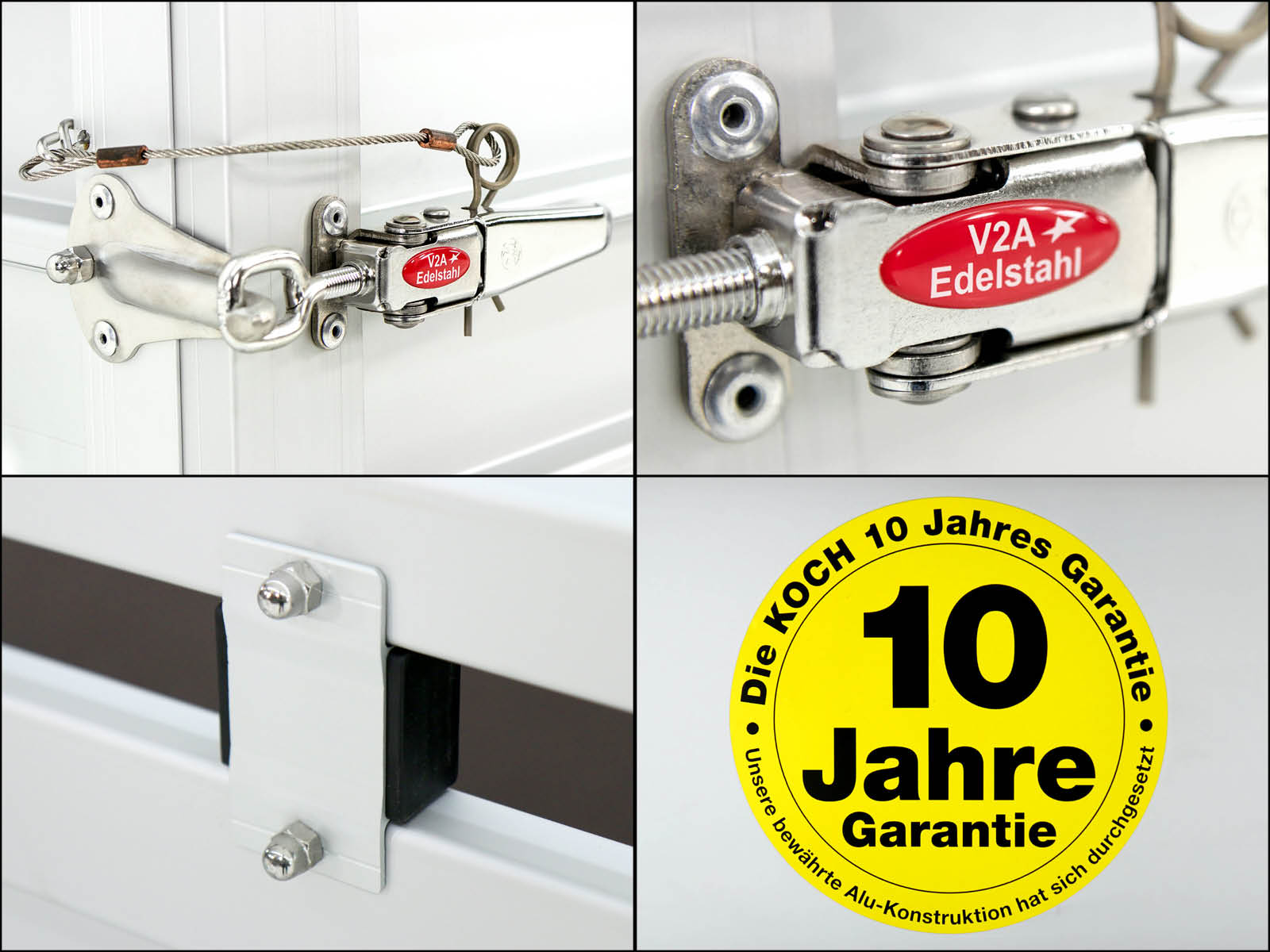 Der Koch Anhänger „Edition 35“ Typ 4.13 in Weiß bietet dasselbe umfassende Set an Ausstattungsmerkmalen wie das gelbe Modell. Der leichte Aluminium-Anhänger ist besonders für den Transport von leichteren bis mittleren Lasten geeignet und überzeugt durch eine hohe Verarbeitungsqualität. Zu den Merkmalen zählen: