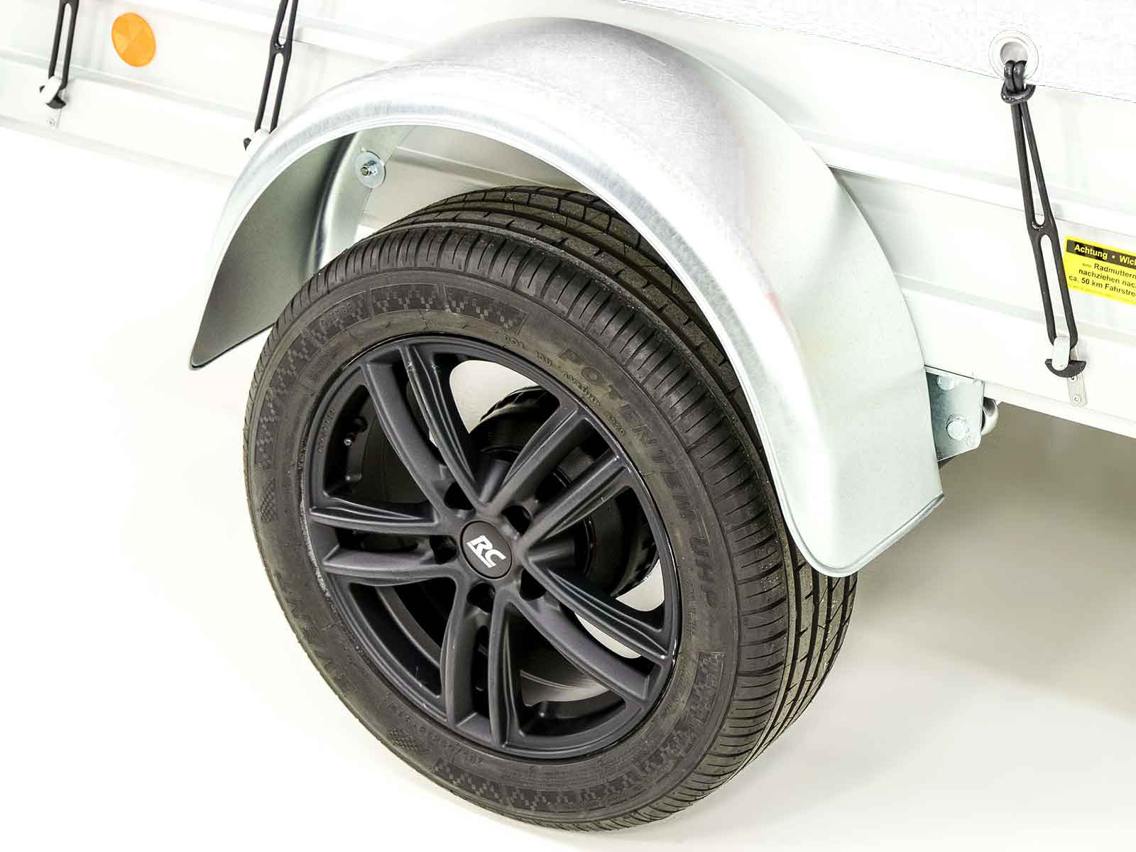 Durch die große Bereifung und die feuerverzinkte Achse von ALKO bietet dieser Anhänger hohe Sicherheit und Langlebigkeit bei einer maximalen Geschwindigkeit von 100 km/h.
