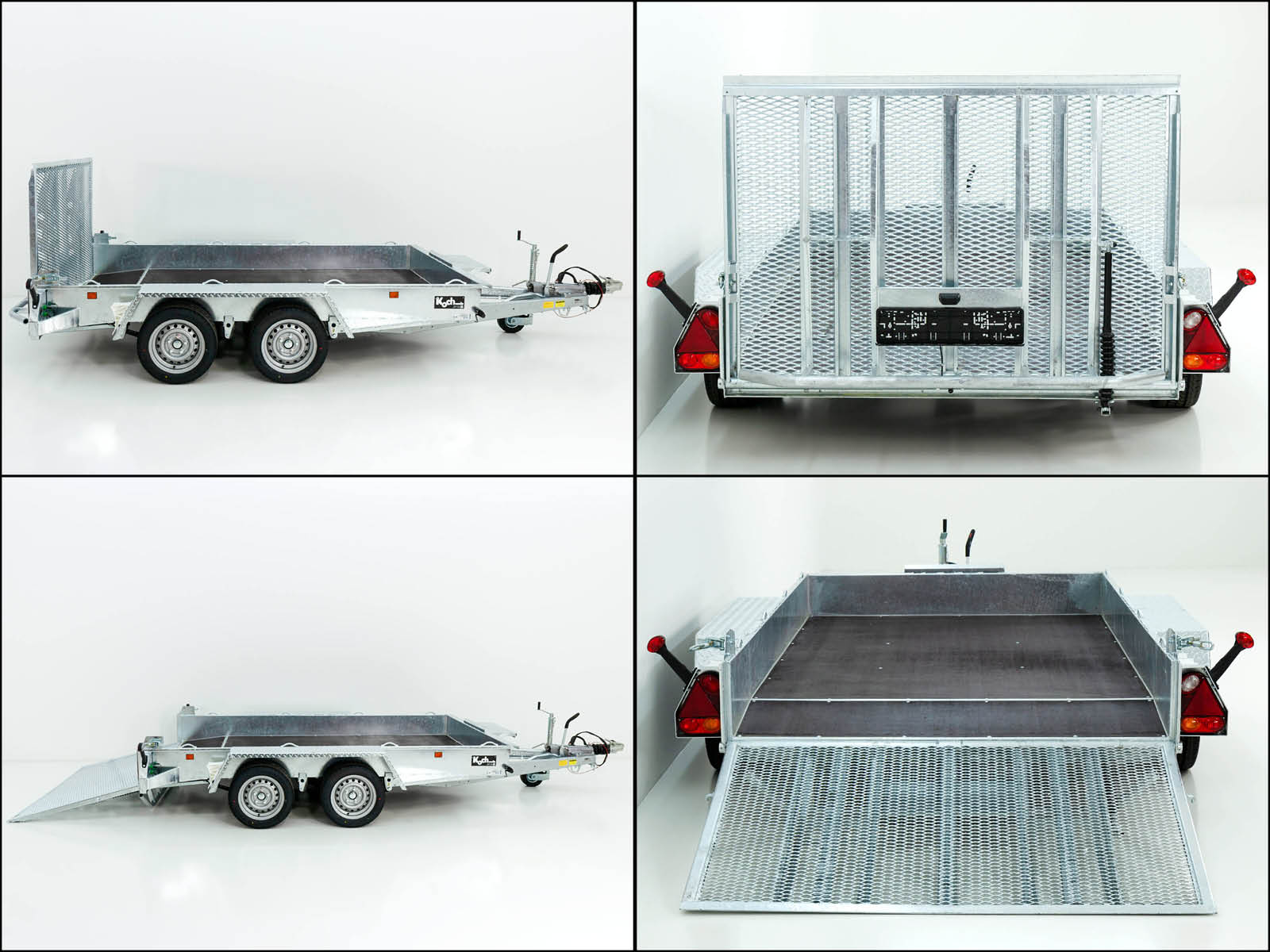 Der „Variant Baumaschinenanhänger Maxi Load 161×305 3,5t“ mit einer durchgehenden Rampe ist ideal für den Transport von schweren Baumaschinen und -fahrzeugen. Die Rampe ist besonders stabil und ermöglicht ein leichtes Auffahren. Die großzügige Nutzlast von 2869 kg sorgt für hohe Belastbarkeit.