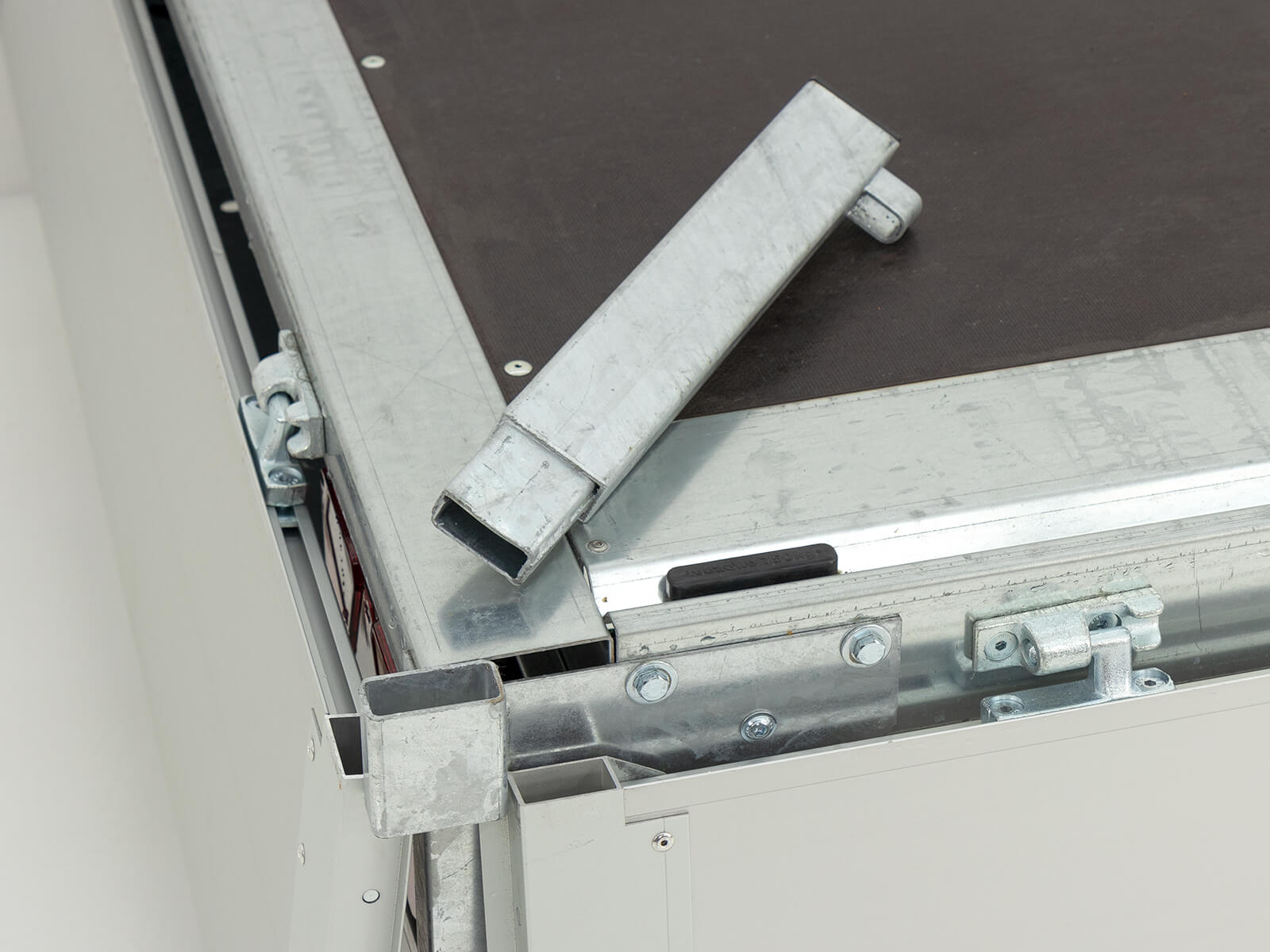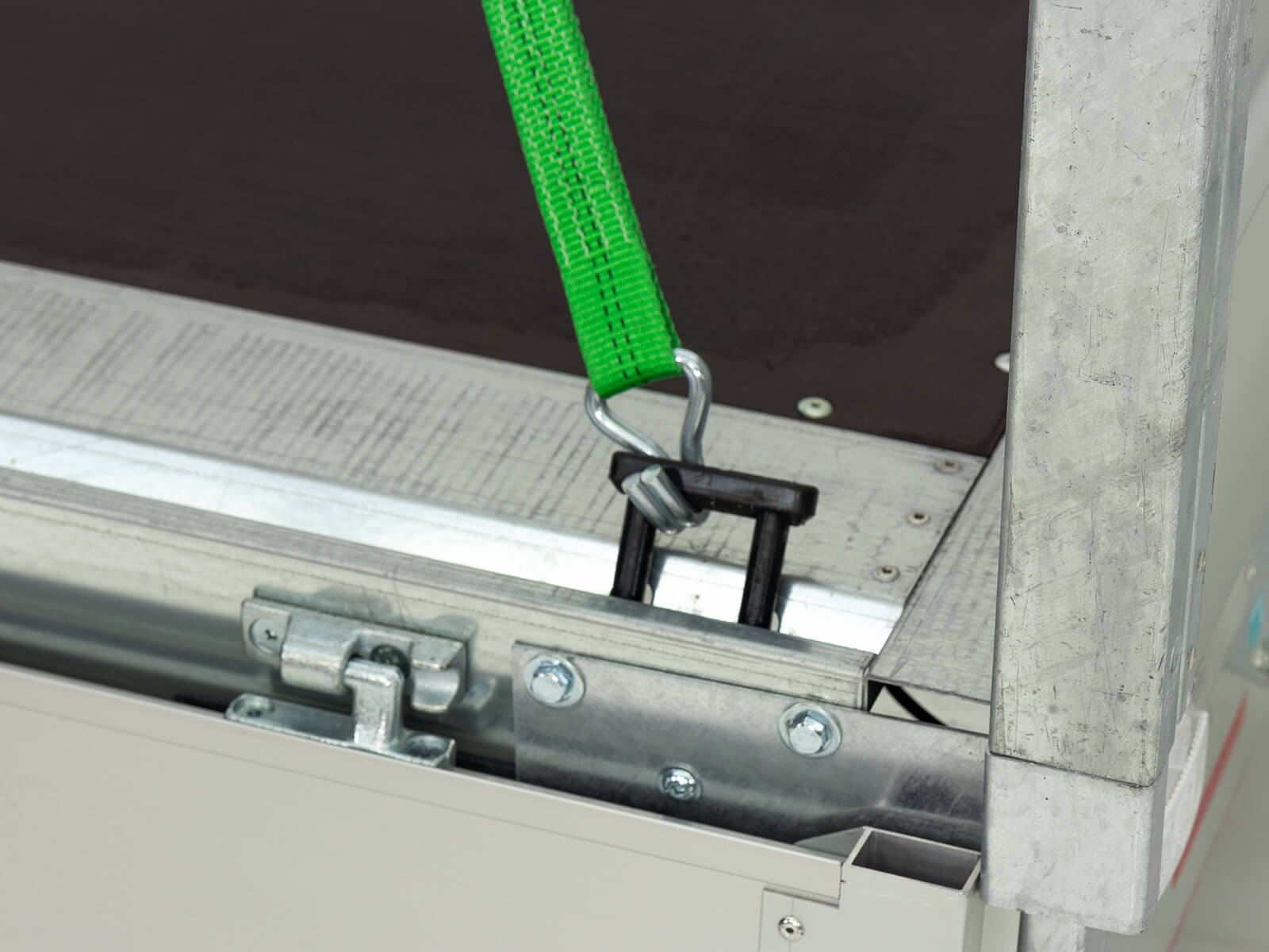 | Zurrösen | 6 Zurrbügel im Bodenrahmenprofil, gummiert |