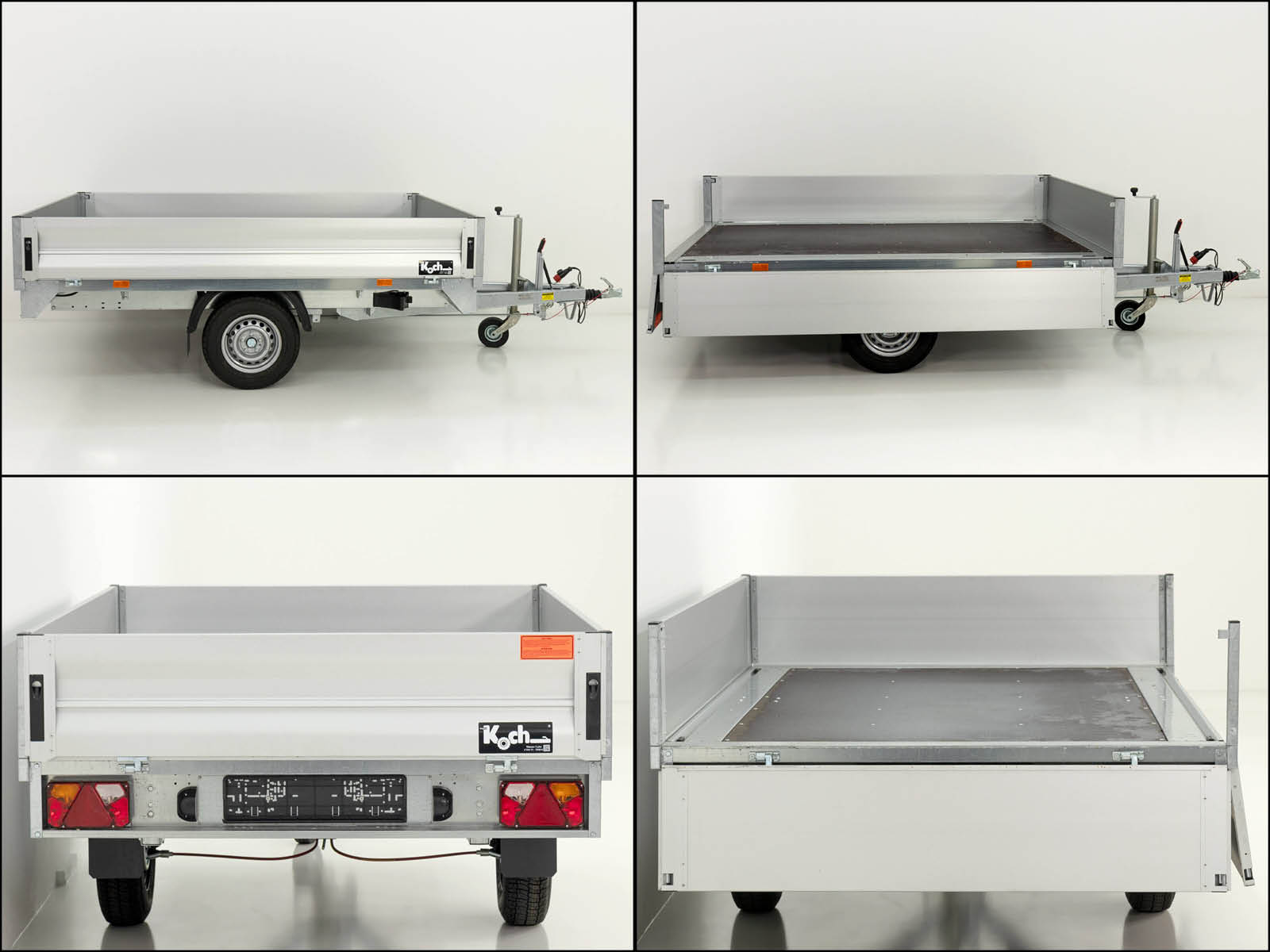 Der Vezeko Hochlader Anhänger DX13.26 überzeugt mit seiner stabilen Multiplex-Holzbodenplatte und einer Aluminium-Bordwand von 350 mm Höhe. Er bietet versenkte Bordwandverschlüsse und gummierte Zurrbügel (4 Stück) für eine sichere Ladungssicherung (500 daN). Die Gummifederachse sorgt für ein wartungsfreies Fahrwerk, kombiniert mit einer Auflaufbremse, einem Automatik-Stützrad und einer Rückfahrautomatik. Der Anhänger ist ebenfalls für eine 100 km/h Zulassung vorbereitet und kann mit einer Hochplane ausgestattet werden (als Zubehör erhältlich). Ideal für den gewerblichen Einsatz oder für den Transport von größeren Lasten.